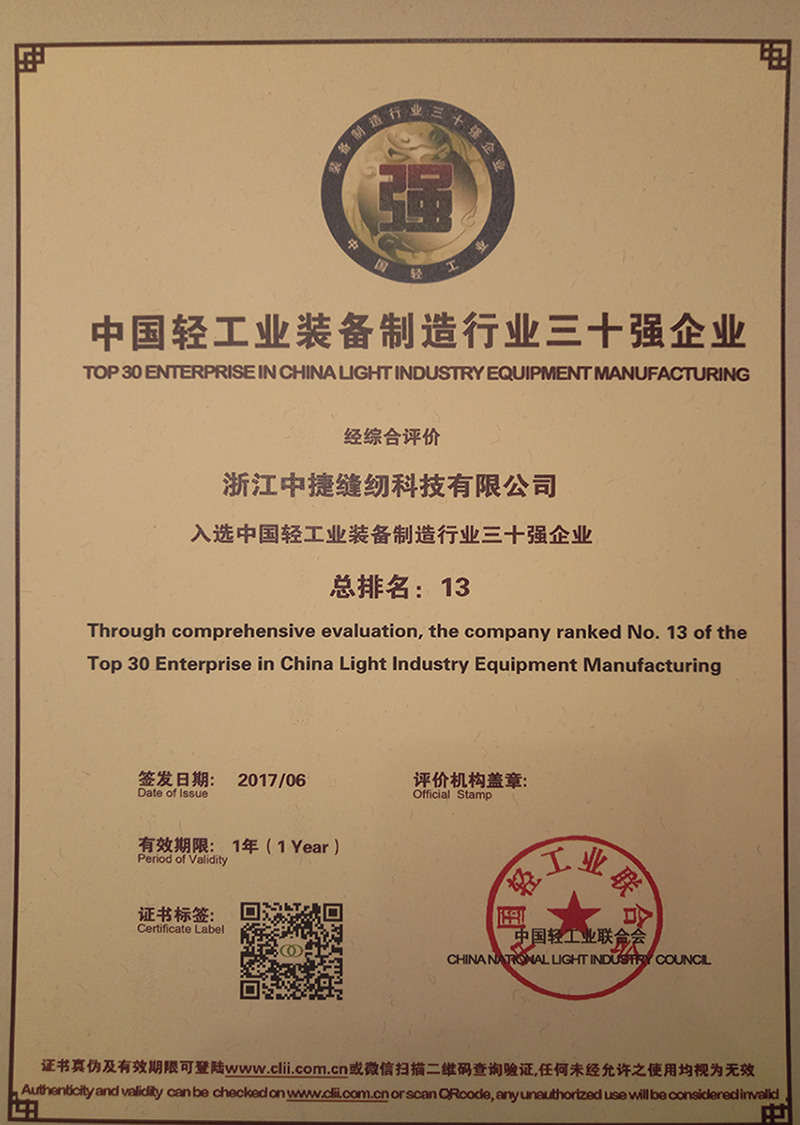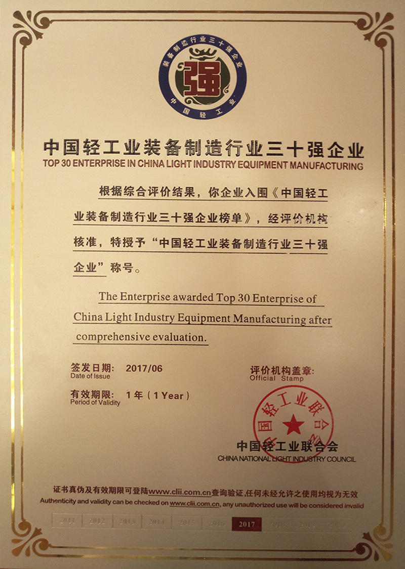 - Top 30 Enterprises in China's Light Industry Equipment Manufacturing Sector