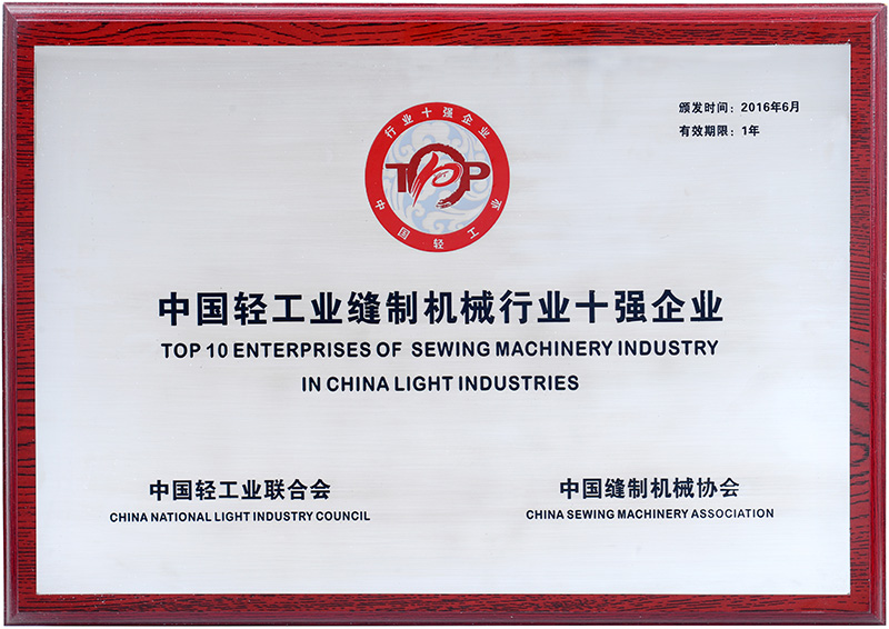 - Top 10 Enterprises in China's Light Industry Sewing and Apparel Machinery Sector
