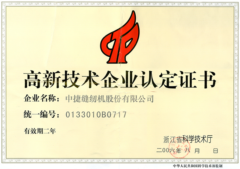 - Key High-Tech Enterprise Certificate