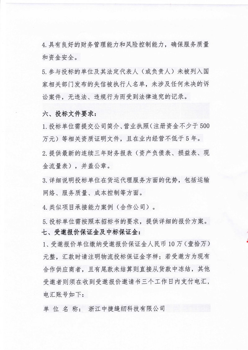 中捷縫紉科技有限公司貨物運(yùn)輸承包邀請(qǐng)告示