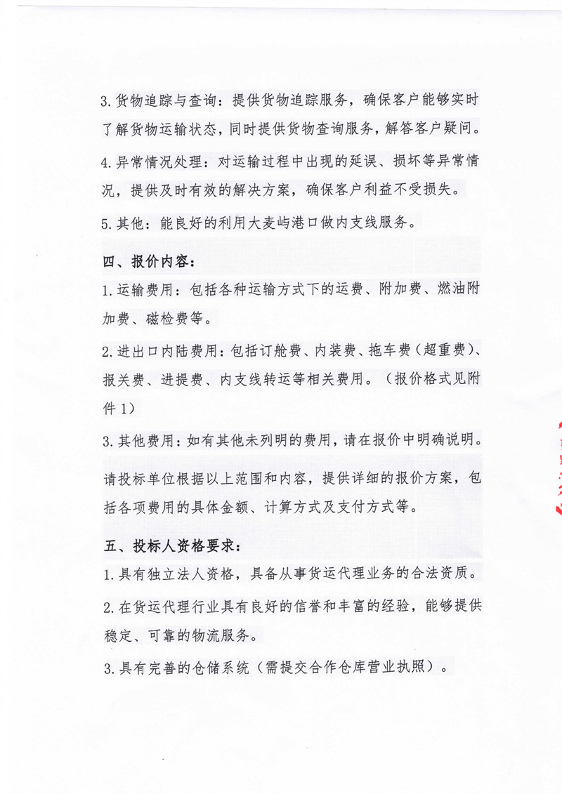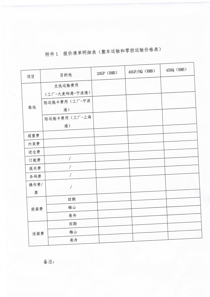 貨運(yùn)代理招標(biāo)書及其報(bào)價(jià)單模板