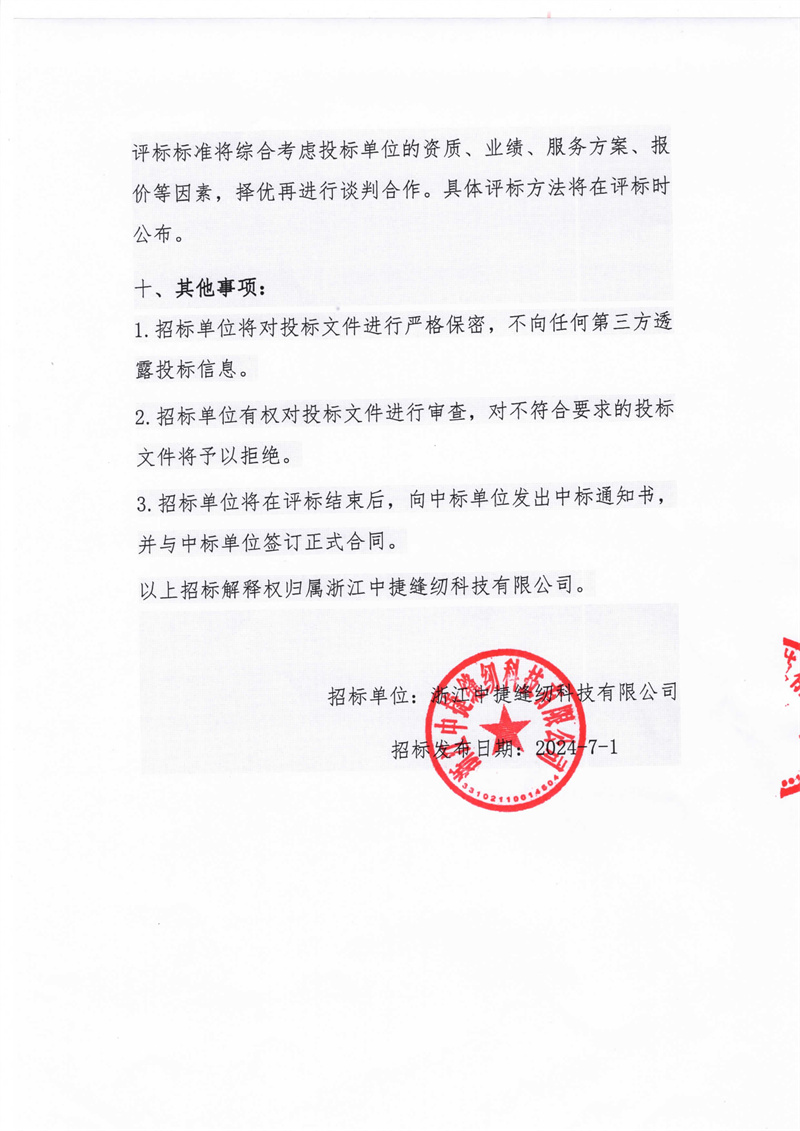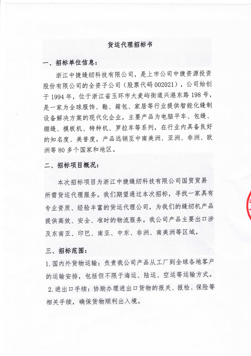 五、邀請(qǐng)招標(biāo)單位:浙江中捷縫紉科技有限公司,地址:玉環(huán)市大麥嶼街道興港東路198號(hào),聯(lián)系人:黃 華,電話:13736638166